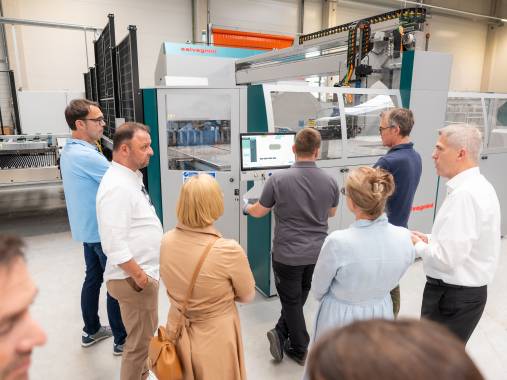 In dem modernen Neubau befinden sich nicht nur die neuen vollausgestatteten Arbeitsplätze der etwa 140 Mitarbeitenden des Geschäftsbereichs, sondern auch die vollautomatisierte Stanz-Laser-Biegelinie und das ebenfalls vollautomatisierte Palettenregal für die Stabbearbeitungszentren sowie ein neues teilautomatisiertes Stabbearbeitungszentrum.