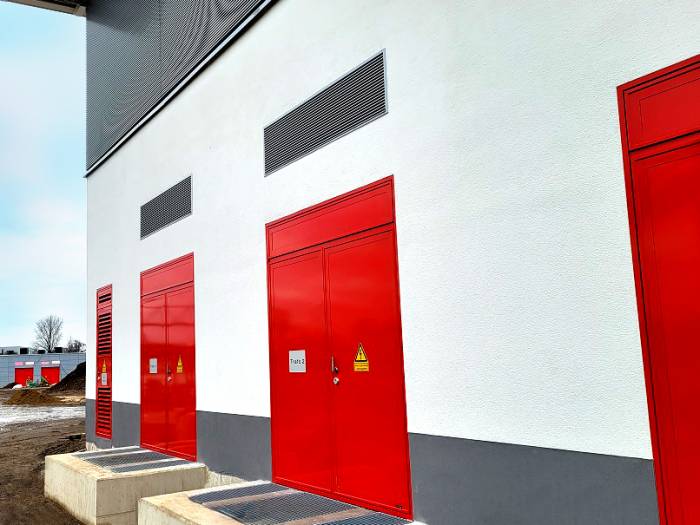Wir durften für diese drei aus Ortbeton hergestellten Gebäude die entsprechenden normgerechten Techniktüren herstellen. In Summe wurden für die Trafo-, Niederspannungs- Mittelspannungs- und elektrischen Betriebsräume 17 Türen im Corporate Design der KVB geliefert und fachgerecht eingebaut. Die Kombination Einbruchschutz in Verbindung mit einer ausreichenden Be- und Entlüftung der Transformatoren standen hier im Vordergrund.