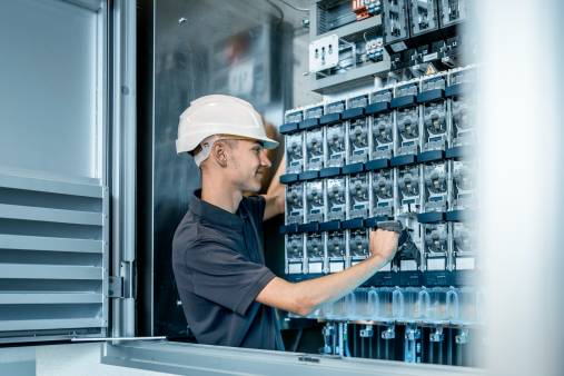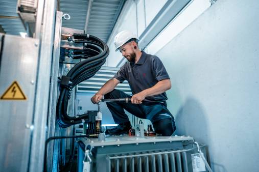 In unseren Betonstationen steckt jede Menge Technik: Unsere Elektriker*innen sind für den fachgerechten Einbau aller Elektrokomponenten zuständig - vom Schaltschrank mit moderner Fernwirktechnik über die Mittelspannungsanlagen und Transformatoren bis hin zur Beleuchtung und Klimatechnik unserer Gebäude. Die richtige Verkabelung und der sichere Ausbau nach den einschlägigen VDE-Normen gehören ebenfalls zu den Aufgaben der Elektriker bei GRITEC. Sie arbeiten Hand in Hand mit unseren Ausbauschlosser*innen, die anspruchsvolle Fußbodenkonstruktionen herstellen sowie unsere individuell in unserem Metallbauwerk gefertigten Türen und Lüftungskomponenten aus Aluminium passgenau in die Stationen einbauen.