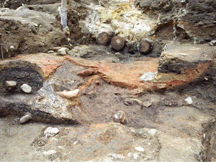 Plošný archeologický výzkum pod vedením PhDr. Jarmily Čihákové probíhal od úrovně dnešního povrchu do hloubky 4,1 m. Výkop byl prováděn v betonové vaně vybudované před zahájením výzkumu pomocí husté mikropilotáže, která umožnila provést archeologický výzkum pod hladinou podzemní vody. Do hloubky 2,4 m zabíral většinu plochy interiér domu zachycený rytinou Roelanta Saveryho. Na zbytku plochy zůstaly zachovány fragmenty dláždění a barokní zdiva a násypy. Spodní část stratigrafie byla vrcholně středověká. Na celé ploše výzkumu tehdy fungovalo ve 2. polovině 13. století výrobní zařízení interpretovatelné jako kovárna. Sestávalo z prostoru výrobního (sled pecí) a z prostoru odpadního, kam se sypal popel. Z pecí často zbyla jen propálená dna, některá s límcem z cihlářské hlíny. Rozvoj kovárny zastavila změna funkce plochy – místem byla vedena zeď, patrně hradba, jejíž základové zdivo bylo 1,5 m široké. Nejspíše se jedná o hradbu z doby opevňování Juditiny věže Jindřichem z Lipé v roce 1309. Zeď však byla téměř celá srovnána se zemí při planýrce okolního prostoru a kamenité úpravě jeho povrchu pravděpodobně v době výstavby Karlova mostu.(PhDr. Jarmila Čiháková, Archeologické oddělení NPÚ Praha, rok 1999, číslo výzkumu 8/99)